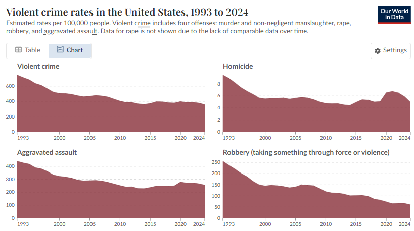In many other communities, per capita rates of violence may be higher (owing to low total populations that lead every incident that does occur to radically juice the stats), but you don’t see violence in your proximity and hear stories about violence that happened elsewhere in your community every single day. Your risk of getting randomly accosted or menaced by a mentally deranged person or criminal on your way to work, or school, or shopping is near zero. Differences in per capita rates of violence may indicate that cities like New York City are safer than most other places, but the lived reality of these different contexts may be very different from what statistics suggest.