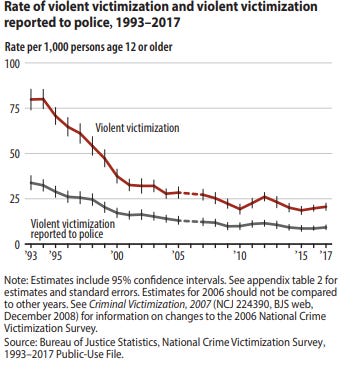 In fact, the total rate of crimes that get solved is even lower than these bleak data suggest because the clearance rate only measures the gap between reported crimes and the arrest of perpetrators. Often, people who are victimized never bother to get the police involved because they understand that their case is unlikely to be solved or, if anything, folding cops into the picture may make things worse. According to BJS estimates, nearly half of violent crimes go unreported.