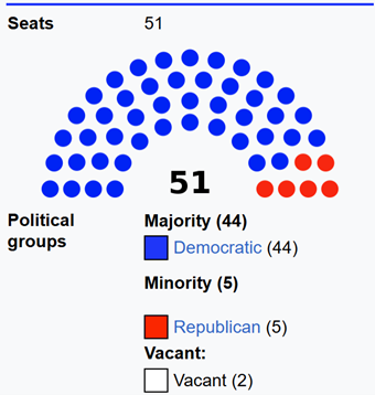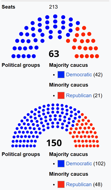 In the state legislature, Democrats have a 2:1 majority in both chambers and also control the governorship.